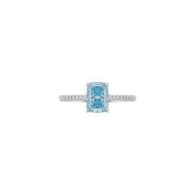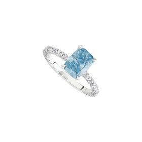 Ring aus 750/- Weißgold mit einem fancy vivid blue Diamanten im Cushion-Schliff (2,01ct.) LG und Brillanten (0,60 ct.) LGProduktspezifikationen