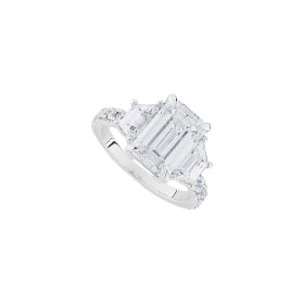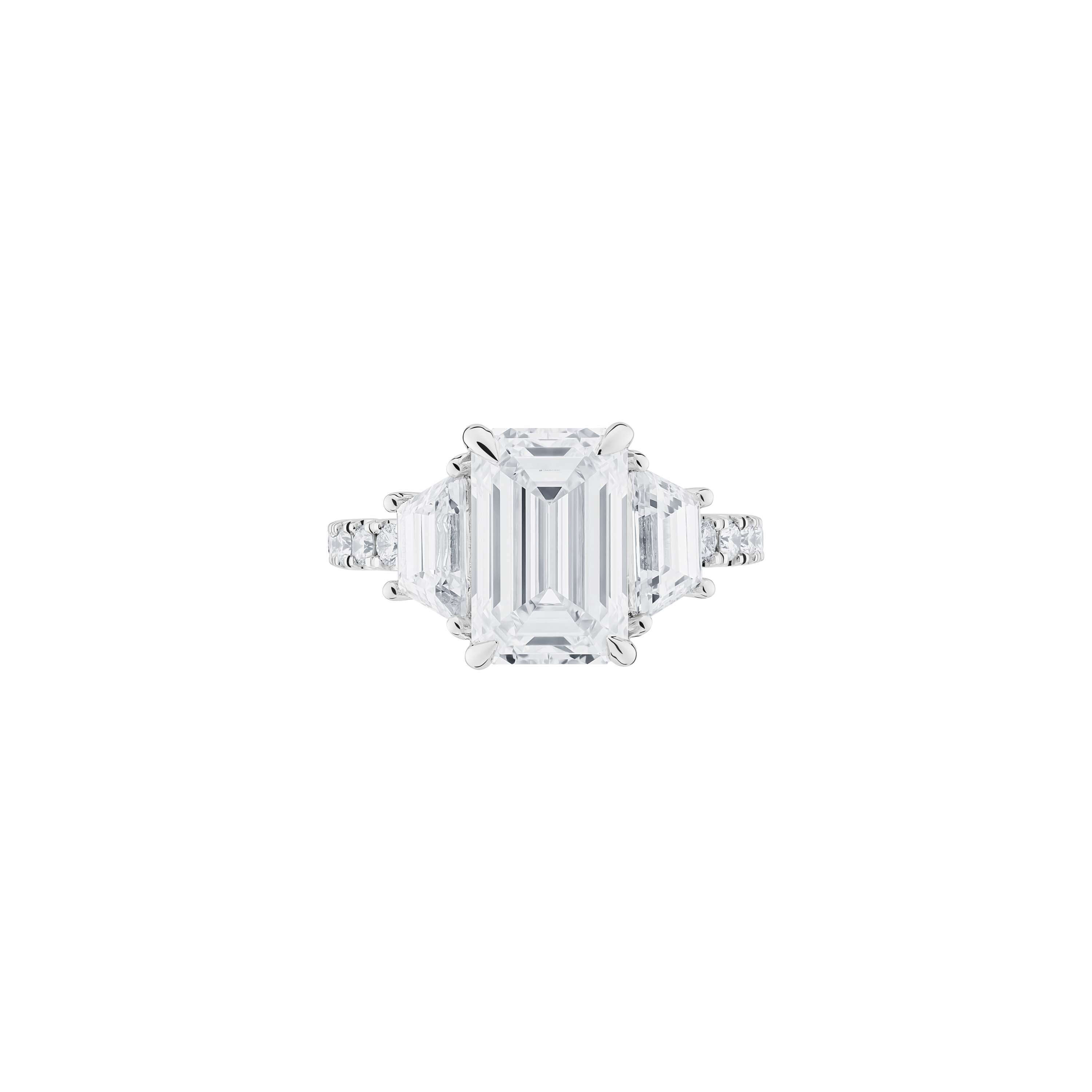 Ring aus 750/- Weißgold mit einem Diamanten im Emerald-Schliff (5,00 ct.) LG, Diamanten im Trapez-Schliff (2,88 ct.) LG und Brillanten (0,39 ct.) LGProduktspezifikationen