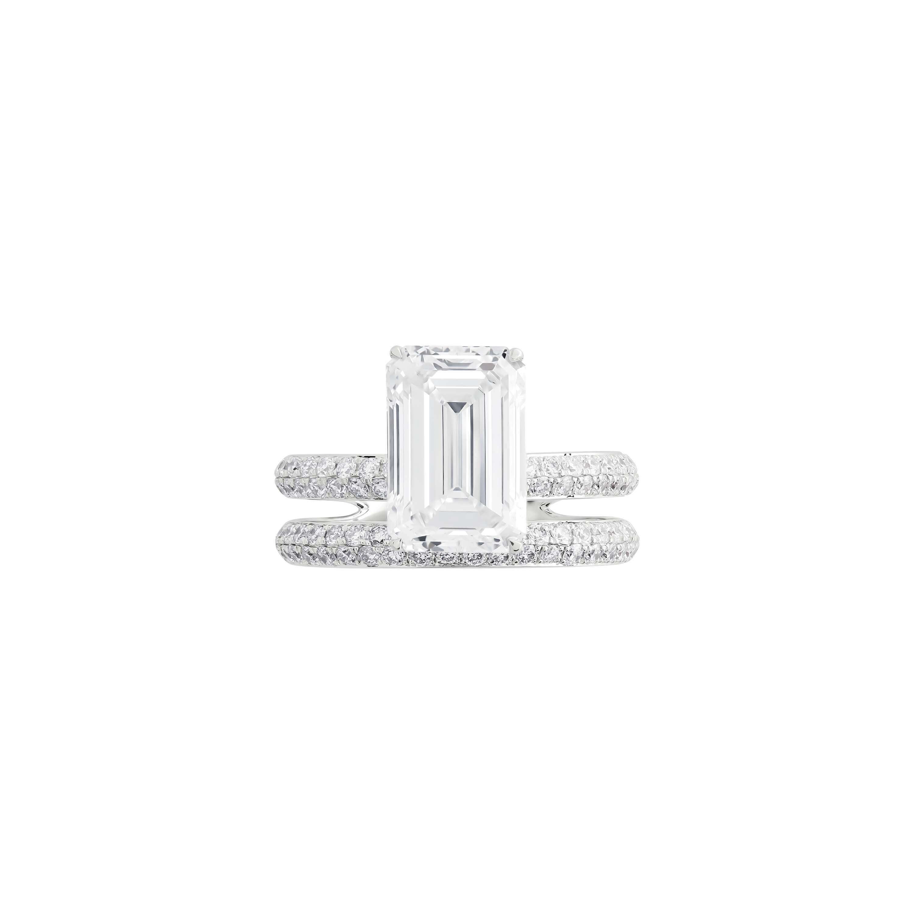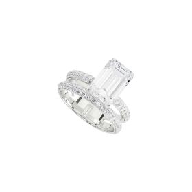 Ring aus 750/- Weißgold mit einem Diamanten im Emerald-Schliff (5,60 ct.) LG und Brillanten (1,42 ct.) LGProduktspezifikationen