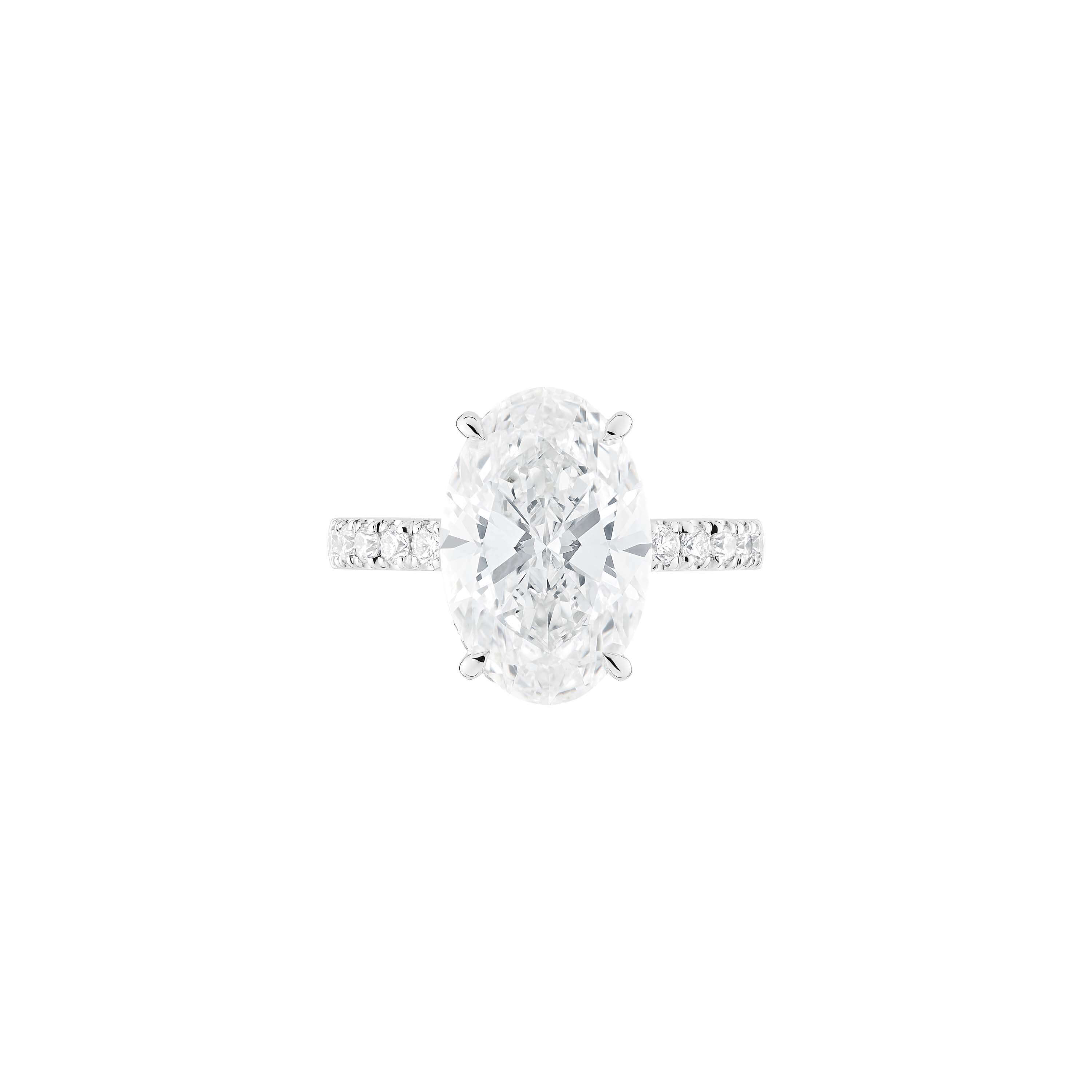 Ring aus 750/- Weißgold mit einem ovalen Diamanten (7,08 ct.) LG und Brillanten (0,58 ct.) LGProduktspezifikationen