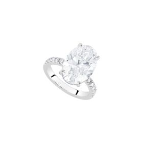 Ring aus 750/- Weißgold mit einem ovalen Diamanten (8,03 ct.) LG und Brillanten (0,60 ct.) LGProduktspezifikationen