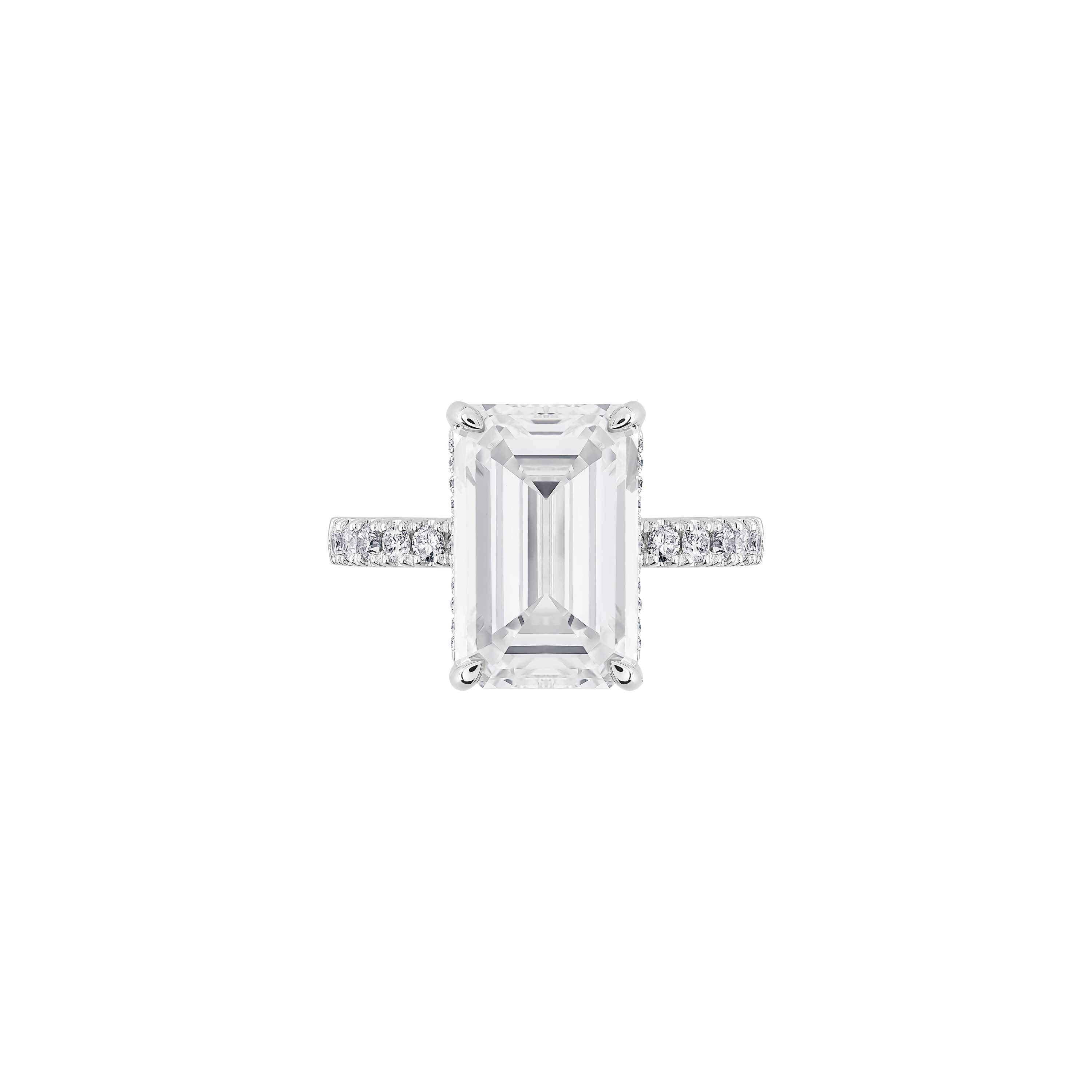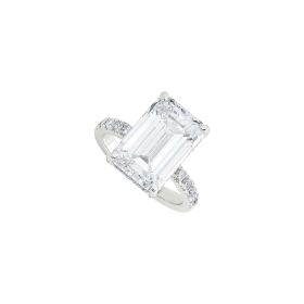 Ring aus 750/- Weißgold mit einem Diamanten im Emerald-Schliff (10,09 ct.) LG und Brillanten (0,60 ct.) LGProduktspezifikationen