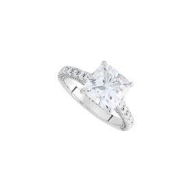 Ring aus 750/- Weißgold mit einem Diamanten im Cushion-Schliff (4,11 ct.) LG und Brillanten (0,91 ct.) LGProduktspezifikationen