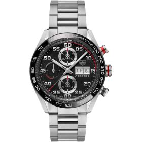 Das charakteristische Design der TAG Heuer Carrera kommt in diesem neu gestalteten Klassiker zum Vorschein. Zahlreiche sportliche Upgrades und ergonomische Verfeinerungen an Gehäuse und Zifferblatt unterstreichen den starken Charakter dieser Ikone. Das schwarze Zifferblatt besticht durch sportliche rote Akzente sowie eine neue emblematische Schriftart für Ziffern und Text.Produktspezifikationen