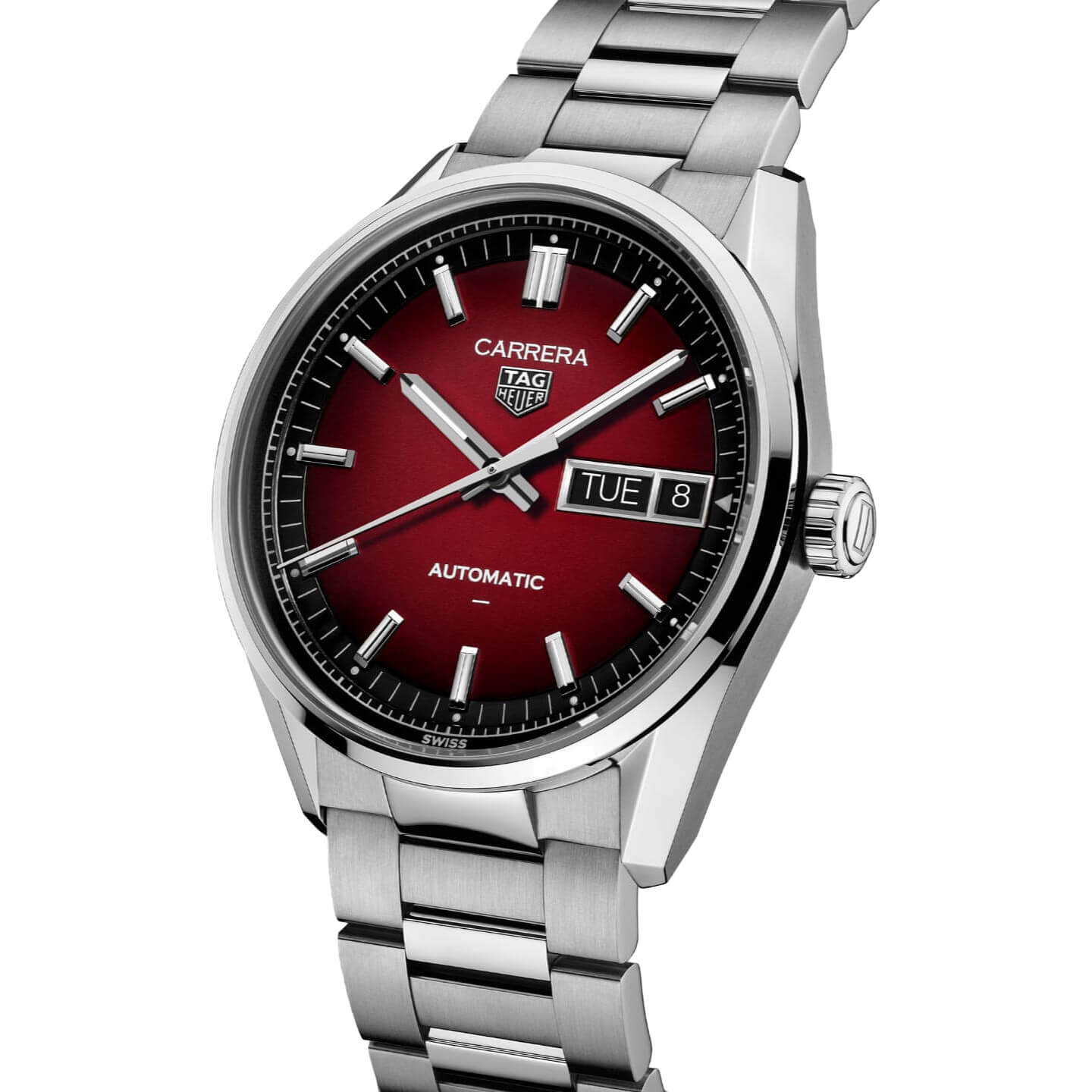 Die TAG Heuer Carrera Day-Date in intensivem Rauchrot bringt frischen Schwung in die Kollektion. Ausgestattet mit dem Calibre TH31-02, verbindet dieser ausdrucksstarke Zeitmesser klassische Linien mit zeitgemäßem Charakter.Produktspezifikationen