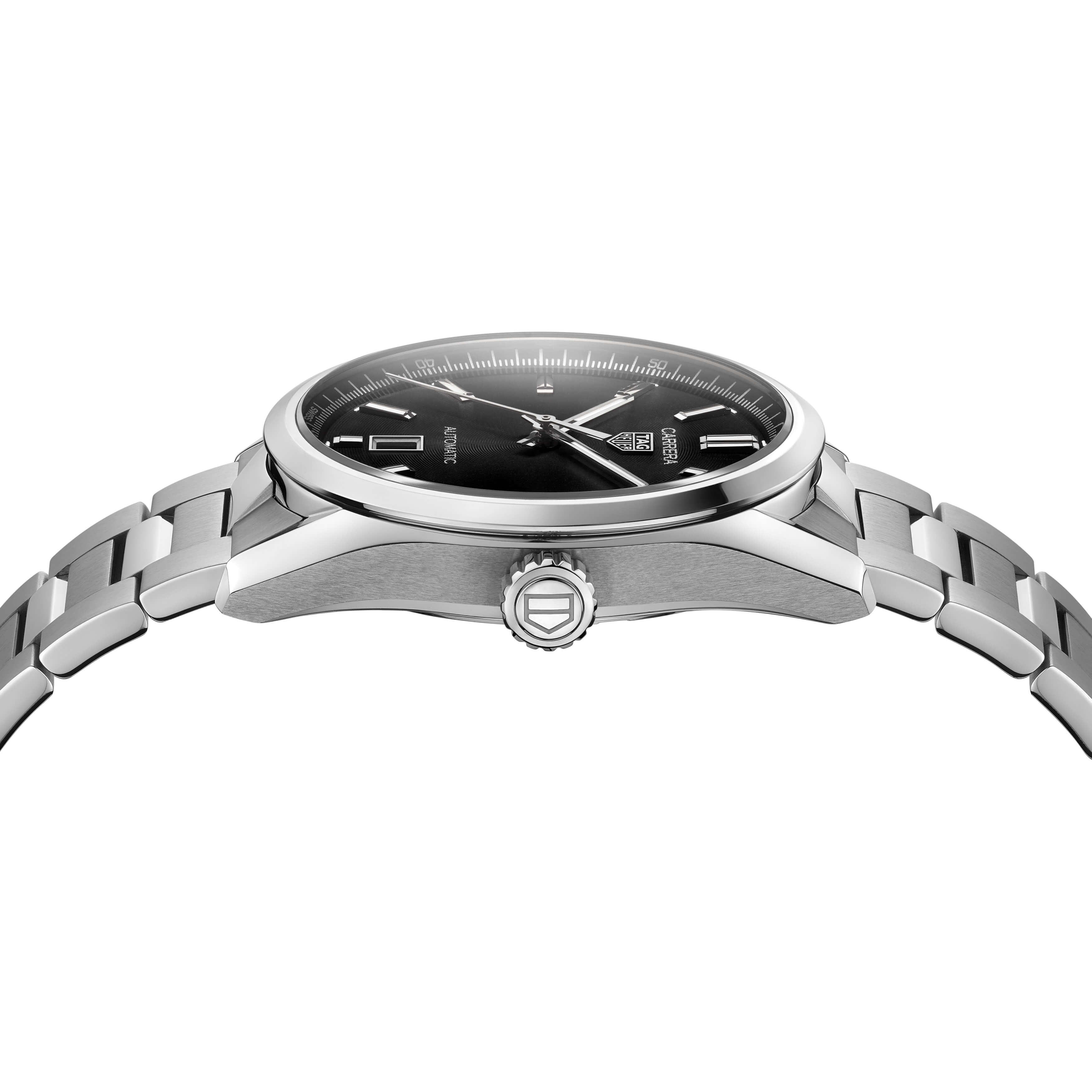 Der Name der TAG Heuer „Carrera“ kommt bereits aus dem Jahr 1963 und ist eine Hommage an die legendäre Carrera Panamericana. Die Neuauflage der TAG Heuer Carrera mit drei Zeigern verbindet elegantes Design mit hochwertigen Materialien. Schwarzes gebürstetes Zifferblatt mit Sonnenschliff, rhodinierte Indizes und Zeiger mit weißem SuperLuminova®, Datumsanzeige bei 6 Uhr.Produktspezifikationen