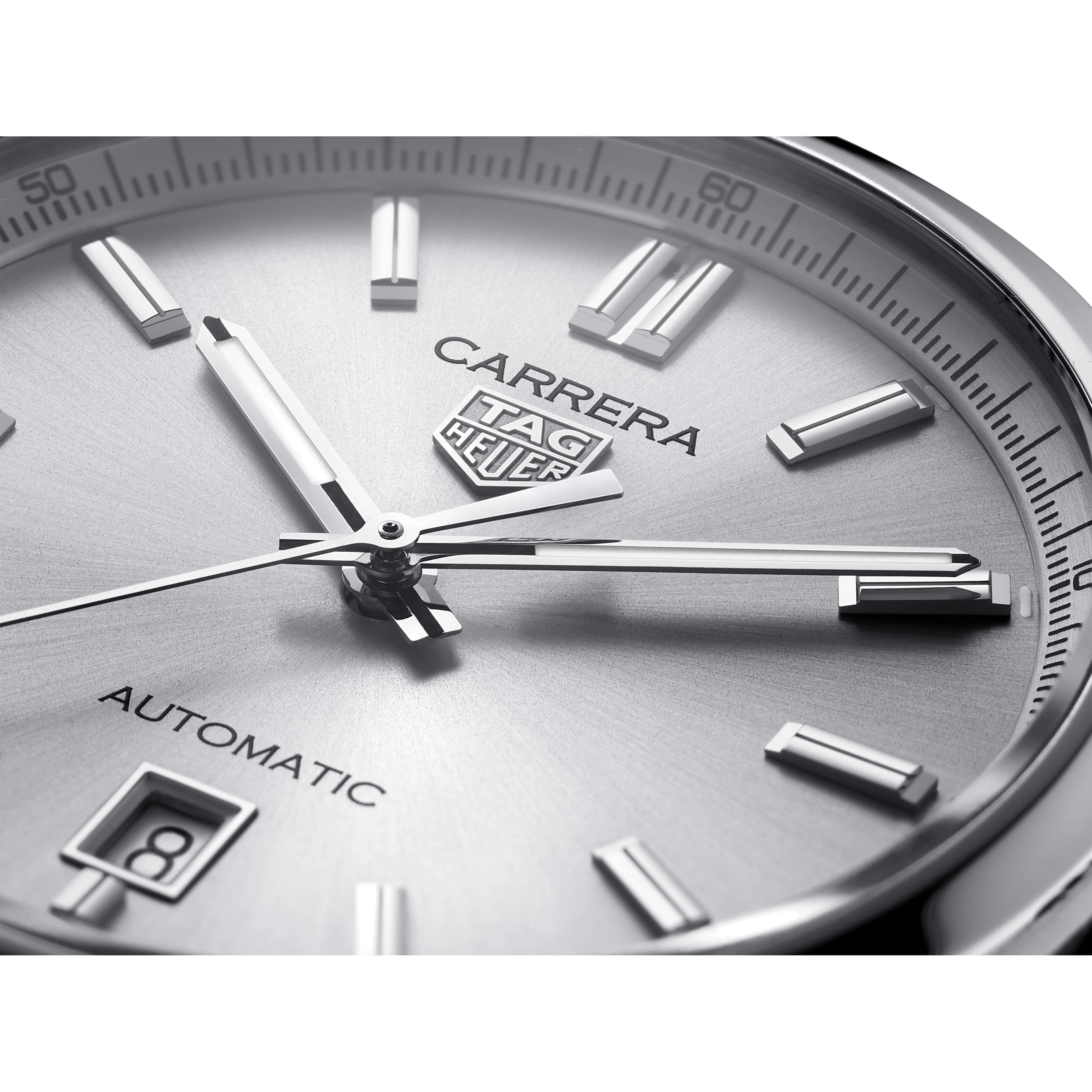 Der Name der TAG Heuer „Carrera“ kommt bereits aus dem Jahr 1963 und ist eine Hommage an die legendäre Carrera Panamericana. Die Neuauflage der TAG Heuer Carrera mit drei Zeigern verbindet elegantes Design mit hochwertigen Materialien. Silbernes gebürstetes Zifferblatt mit Sonnenschliff, rhodinierte Indizes und Zeiger mit weißem SuperLuminova®, Datumsanzeige bei 6 Uhr.Produktspezifikationen