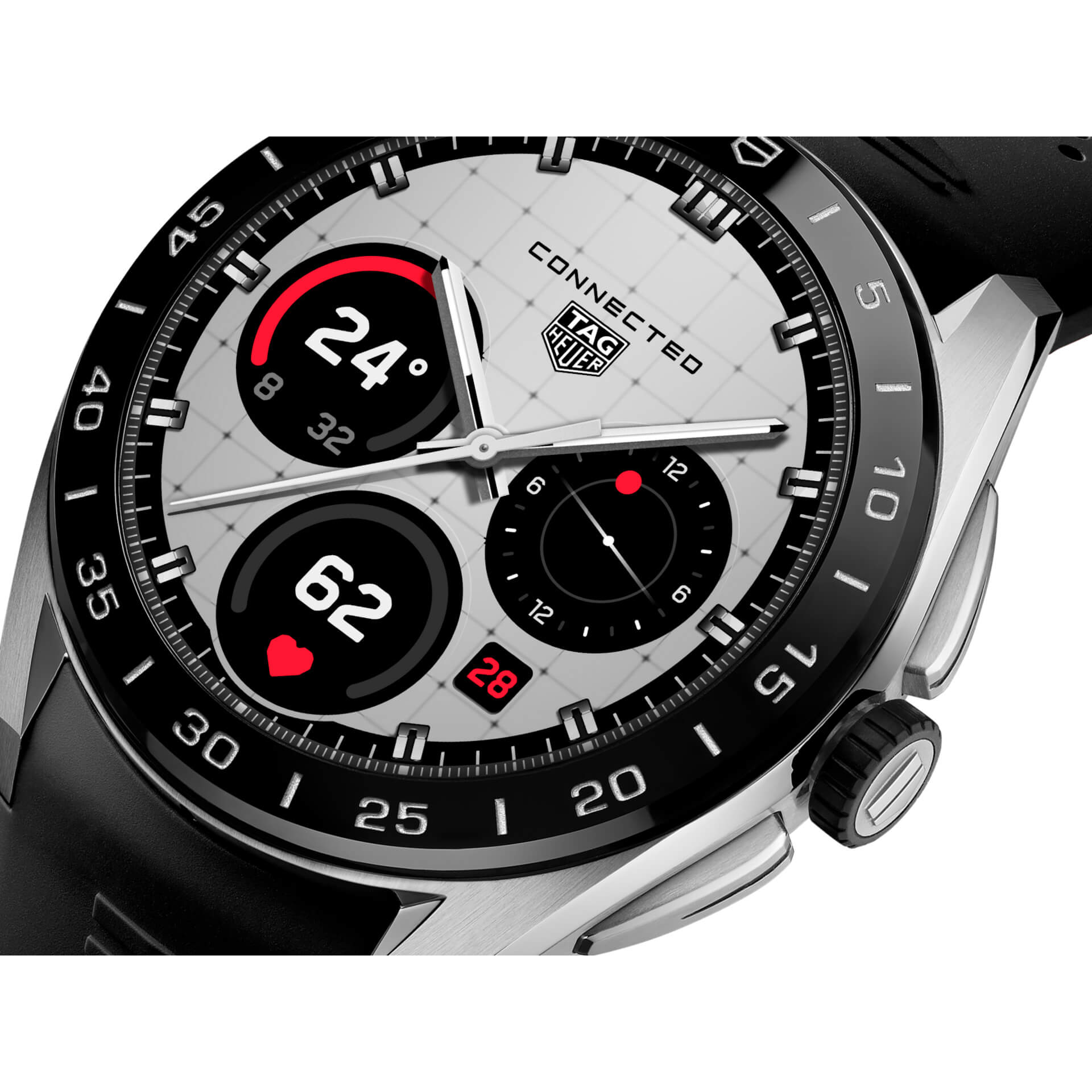 Die TAG Heuer Connected Calibre E5 vereint die Uhrmacherkunst und den avantgardistischen Geist von TAG Heuer auf eindrucksvolle Weise. Die Marke bringt diese Philosophie sowohl in digitalen als auch in mechanischen Kreationen zum Ausdruck. Die 45-mm-Connected Watch verbindet robustes Design mit intelligenter Funktionalität und bietet so eine vielseitige, moderne Smartwatch für jeden Moment des Tages.Produktspezifikationen
