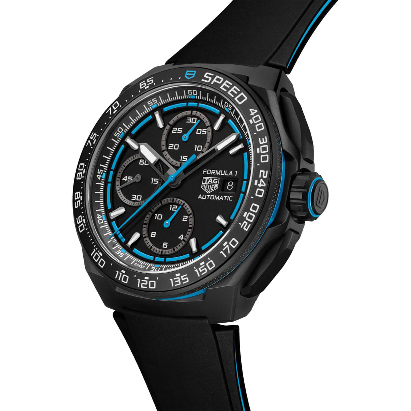 Dieser automatische 44-mm-Chronograph markiert ein neues Kapitel in der TAG Heuer Formula 1 Kollektion und spiegelt den unerschütterlichen Rennsportgeist wider. Mit seinem widerstandsfähigen Gehäuse aus Titan Grad 2 und dem sportlichen Kautschukarmband ist er für Höchstleistung und Präzision – sowohl auf der Strecke als auch im Alltag – geschaffen.Produktspezifikationen