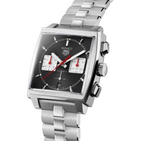 Ein neuer Look dank des neu gestalteten Armbands aus Edelstahl, inspiriert von Monaco Uhren aus den frühen 1970er Jahren. Das original Armband wurde neu gestaltet, um den heutigen Maßstäben gerecht zu werden und einen verbesserten Komfort zu bieten. Dieser Monaco Chronograph verfügt über ein elegantes schwarzes Zifferblatt mit Sonnenstrahleneffekt und roter kleiner Sekunde in einem quadratischen 39-mm-Gehäuse. Um die berühmte Monaco Ikone zu feiern, greift TAG Heuer die traditionellen Farben der Monaco Kollektion auf und präsentiert das hausintern gefertigte Uhrwerk Heuer 02. Auch wenn dieser Chronograph einen entschiedenen Retrocharme hat, verfügt er über einen leistungsstarken Motor: das hauseigene hochmoderne Automatikwerk Calibre Heuer 02, das durch den Gehäuseboden aus Saphirglas sichtbar ist. Das 39-mm-Gehäuse ist aus fein gebürstetem und perfekt poliertem Edelstahl gefertigt. Das abgeschrägte und gewölbte Saphirglas, das das Zifferblatt schützt, ist robust und mit markanten Abrundungen versehen.Produktspezifikationen