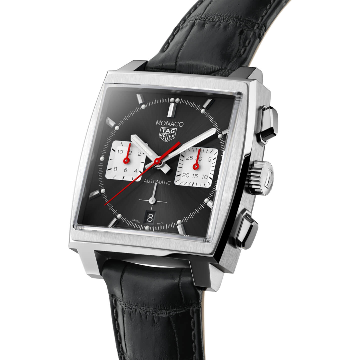 Diese elegante Monaco verbindet ihr emblematisches quadratisches Zifferblatt mit einem spektakulären schwarzen Zifferblatt und einem Armband aus schwarzem Alligatorleder. Eine unkonventionelle Kreation mit dem hauseigenen TAG Heuer Automatikwerk Heuer 02 mit einer Gangreserve von über 80 Stunden. Ein aussagekräftiges Design: Dieses spektakuläre Modell ist von den Modellen aus den 1970er Jahren inspiriert. Die stilvollen Varianten machen die Monaco mit dem kühnen schwarzen Zifferblatt im Sonnenschliff zu weit mehr als einem Traditionsmodell. Dieser Monaco Chronograph, dessen Kollektion eine absolute Ikone der Marke TAG Heuer ist, setzt unser hauseigenes Uhrwerk Heuer 02 in Szene. Dieses Automatikwerk verfügt über eine Gangreserve von 80 Stunden. Ein 39-mm-Gehäuse aus fein gebürstetem, poliertem Edelstahl mit einem abgeschrägten, gewölbten Saphirglas und einer Wasserdichtigkeit bis zu einer Tiefe von 100 Metern.Produktspezifikationen
