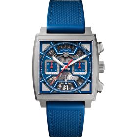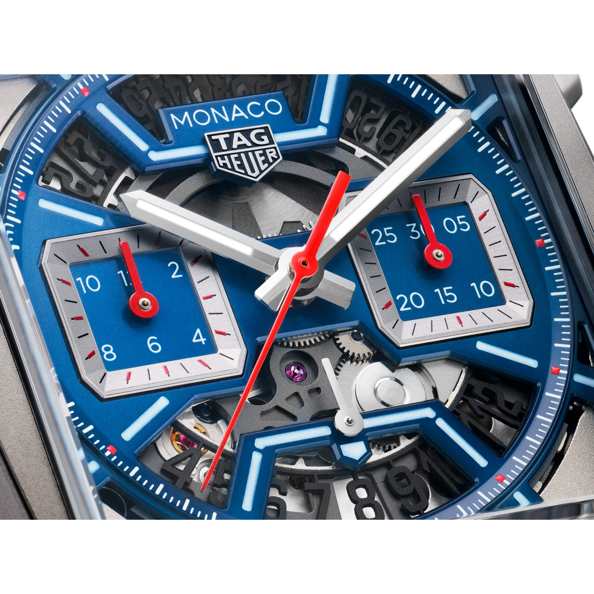 Die TAG Heuer Monaco, deren Design vom blauen Zifferblatt des Originals inspiriert wurde, präsentiert sich als bemerkenswertes technisches Meisterwerk. Erstmals verfügt sie über ein aufwendig skelettiertes Zifferblatt in kühnen Farben und verkörpert somit die ultimative Ikone der rechteckigen Uhrmacherkunst.Produktspezifikationen