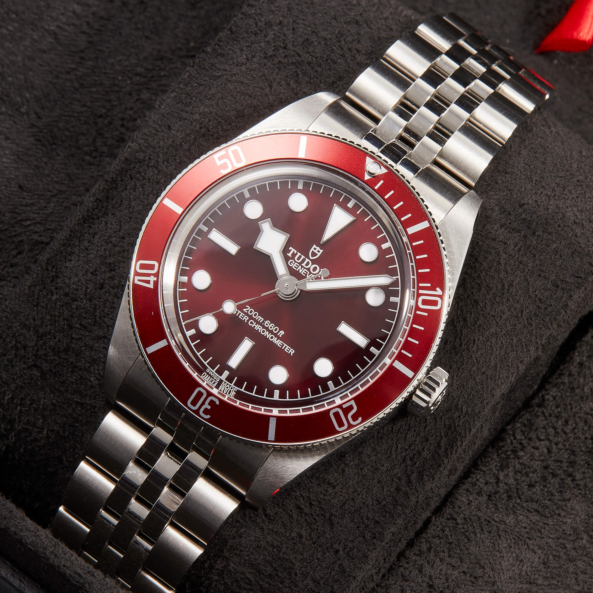 Die Tudor Black Bay 58 Referenz 7939A1A0RU-61560 präsentiert sich als moderner Klassiker mit 39 mm Edelstahlgehäuse und markantem bordeauxfarbenem Zifferblatt samt passender Lünette. Angetrieben vom METAS-zertifizierten Manufakturkaliber MT5400-U bietet sie höchste Präzision, ca. 65 Stunden Gangreserve und 200 m Wasserdichtigkeit – eine sportliche Taucheruhr mit starkem Vintage-Charakter und hohem Alltagskomfort dank T-fit-Schließe.- Durchmesser