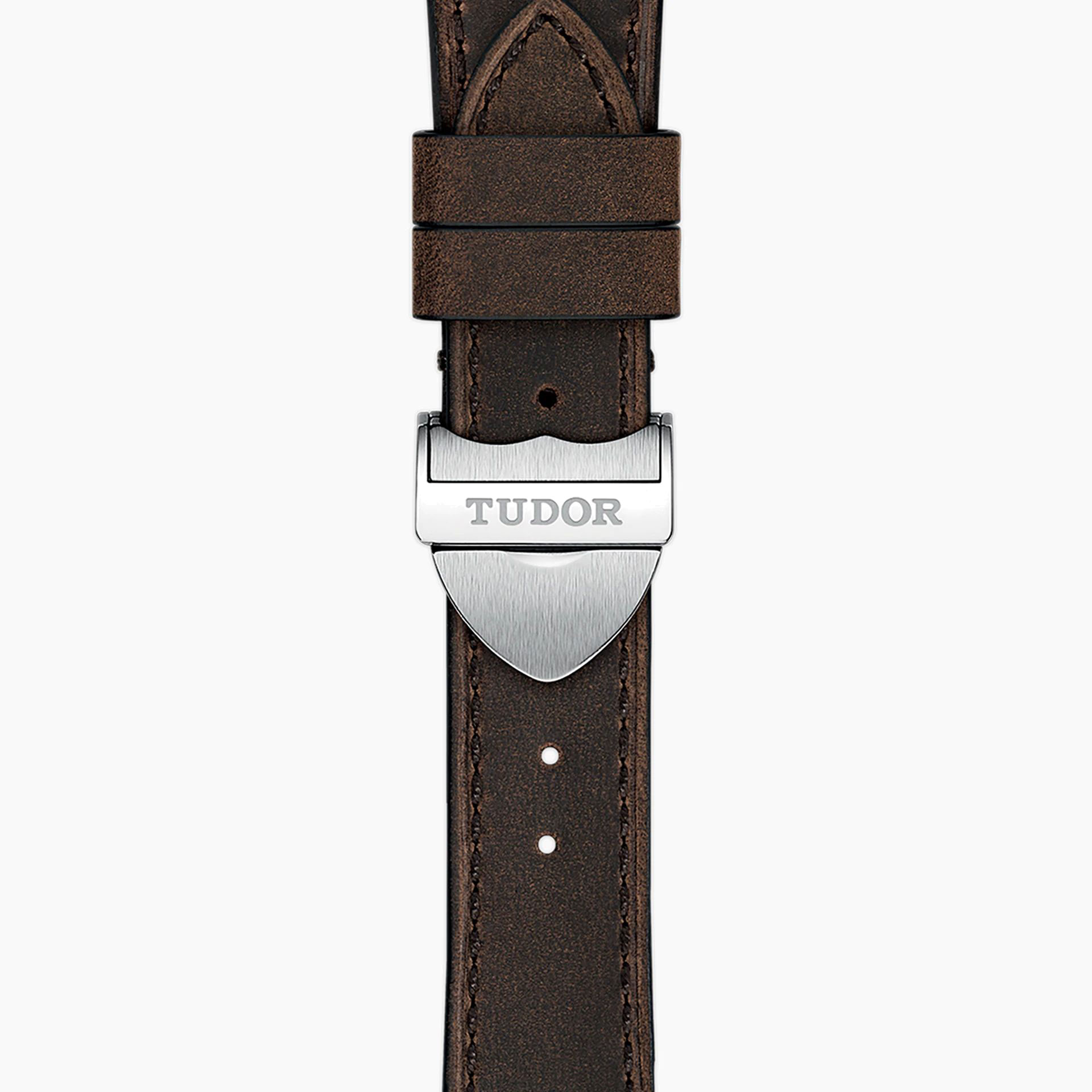 TUDOR Black Bay 58 mit Manufakturwerk Kaliber MT5402 (COSC), Edelstahlgehäuse von 39 mm. Schwarz, gewölbtes Zifferblatt. In eine Richtung drehbare Lünette in Edelstahl mit Zahlenscheibe aus mattschwarz eloxiertem Aluminium, 60-Minuten-Graduierung und rosévergoldete Markierungen und Ziffern. Braunes Lederband mit Sicherheitsfaltschließe.Produktspezifikationen