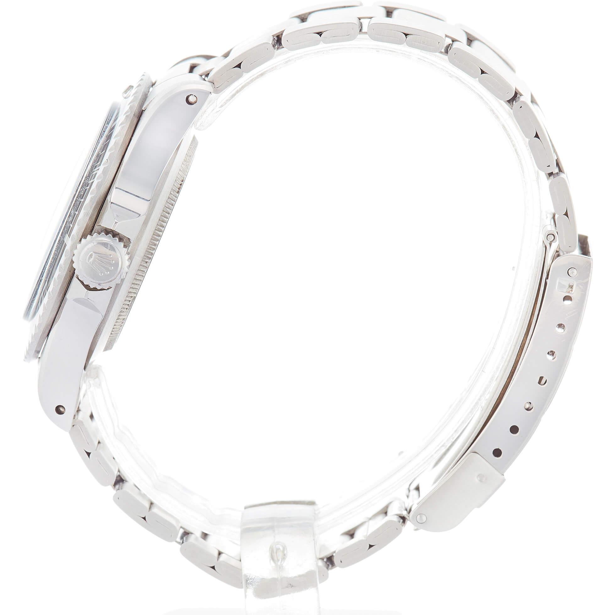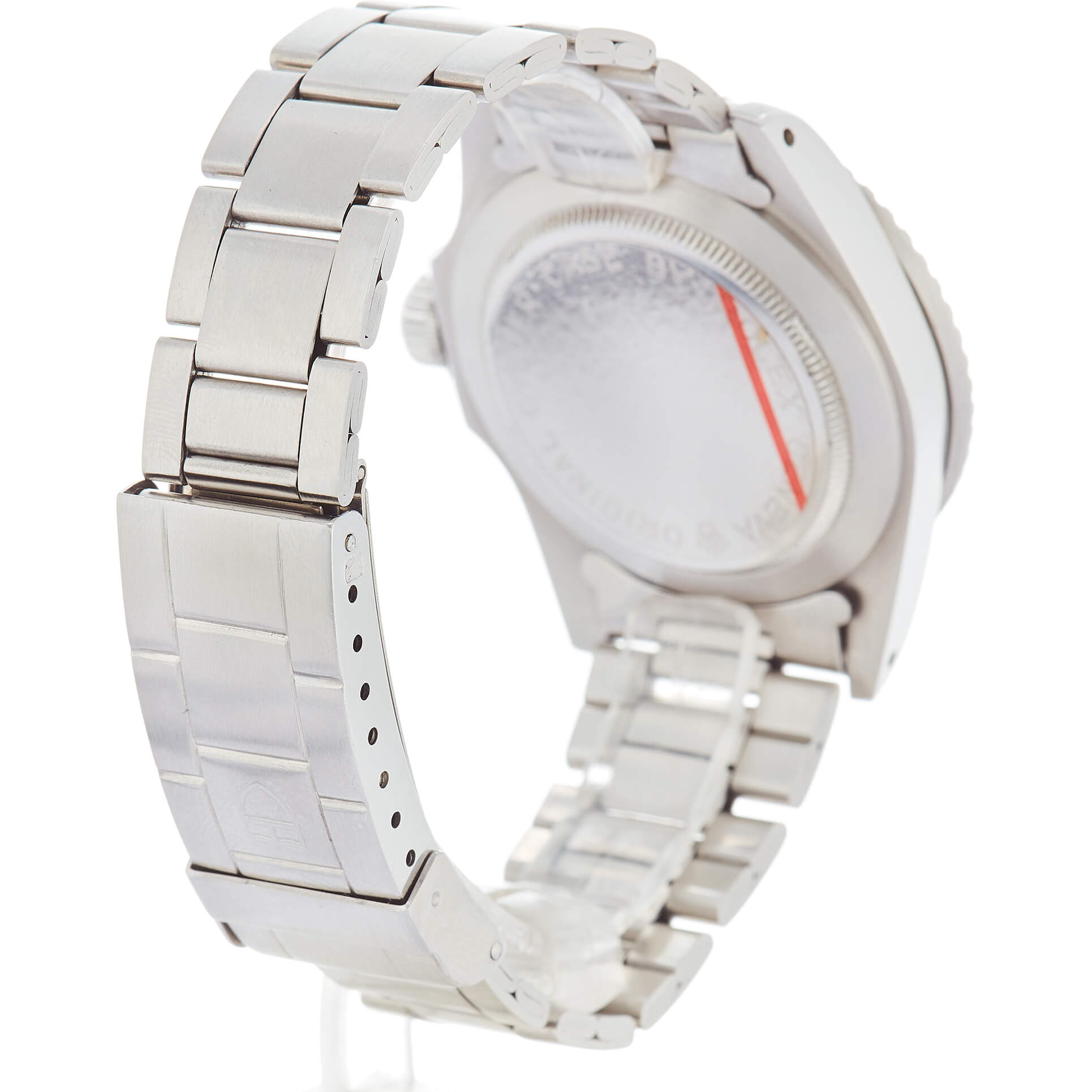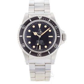 Tudor Submariner aus dem Jahr 1961. Bei dieser Uhr wurde in den 80er Jahren ein Tauschzifferblatt sowie ein Tauscharmband verbaut. Dies lässt sich aufgrund des Schließencodes des Bandes herleiten, welcher das Baujahr 1987 angibt. Das Interessante daran ist, dass sich trotz des Tauschblatts eine schöne Vintage-Patina entwickelt hat, da Tauschblätter in den 80er Jahren noch mit Tritiumleuchtmasse ausgestattet waren. In der Regel begegnet einem die Referenz 7928 häufig mit dem originalen Zifferblatt aus dem Entstehungsbaujahr - mit einem Tauschzifferblatt, welches über Tritiumleuchtmasse verfügt, findet man diese Uhr deutlich seltener.