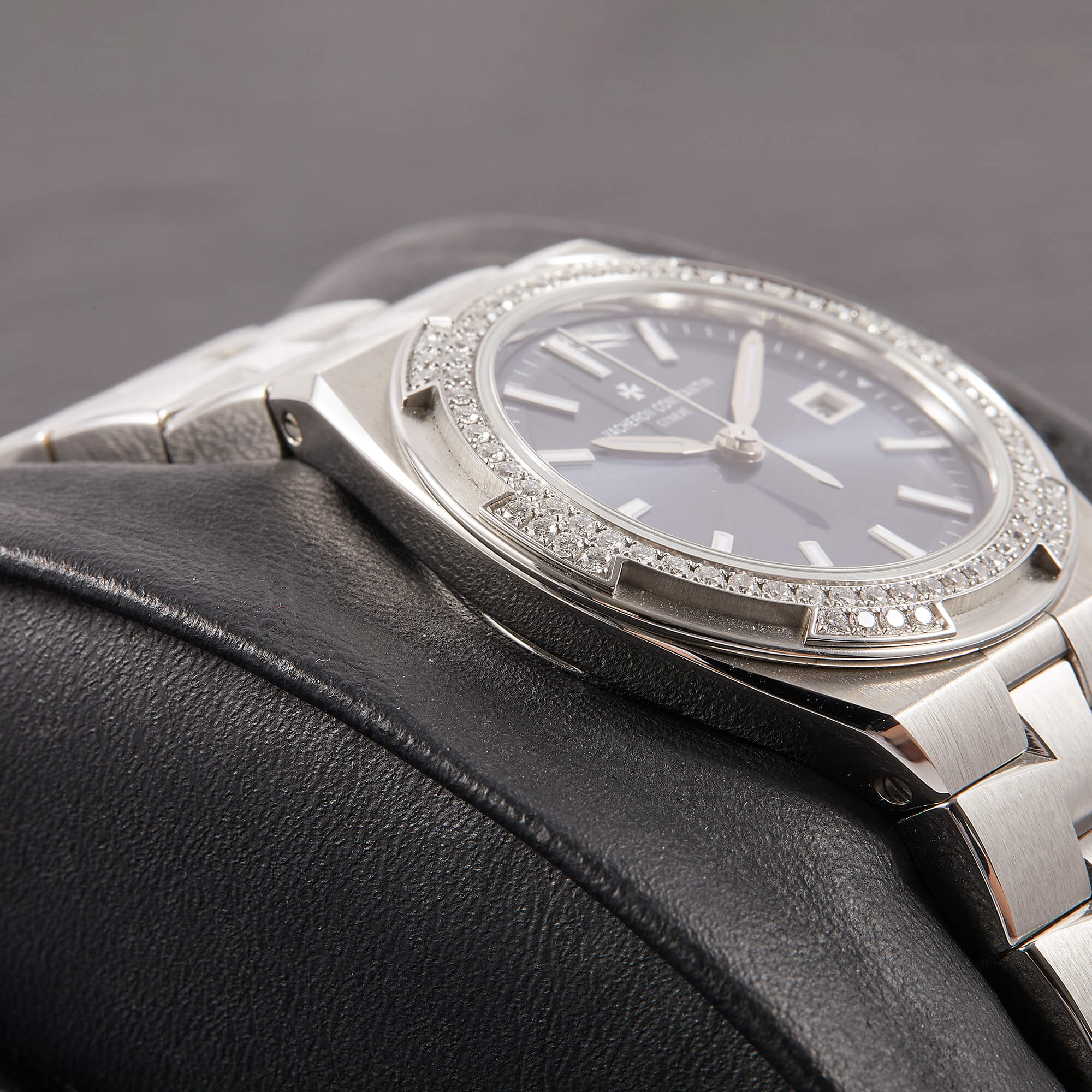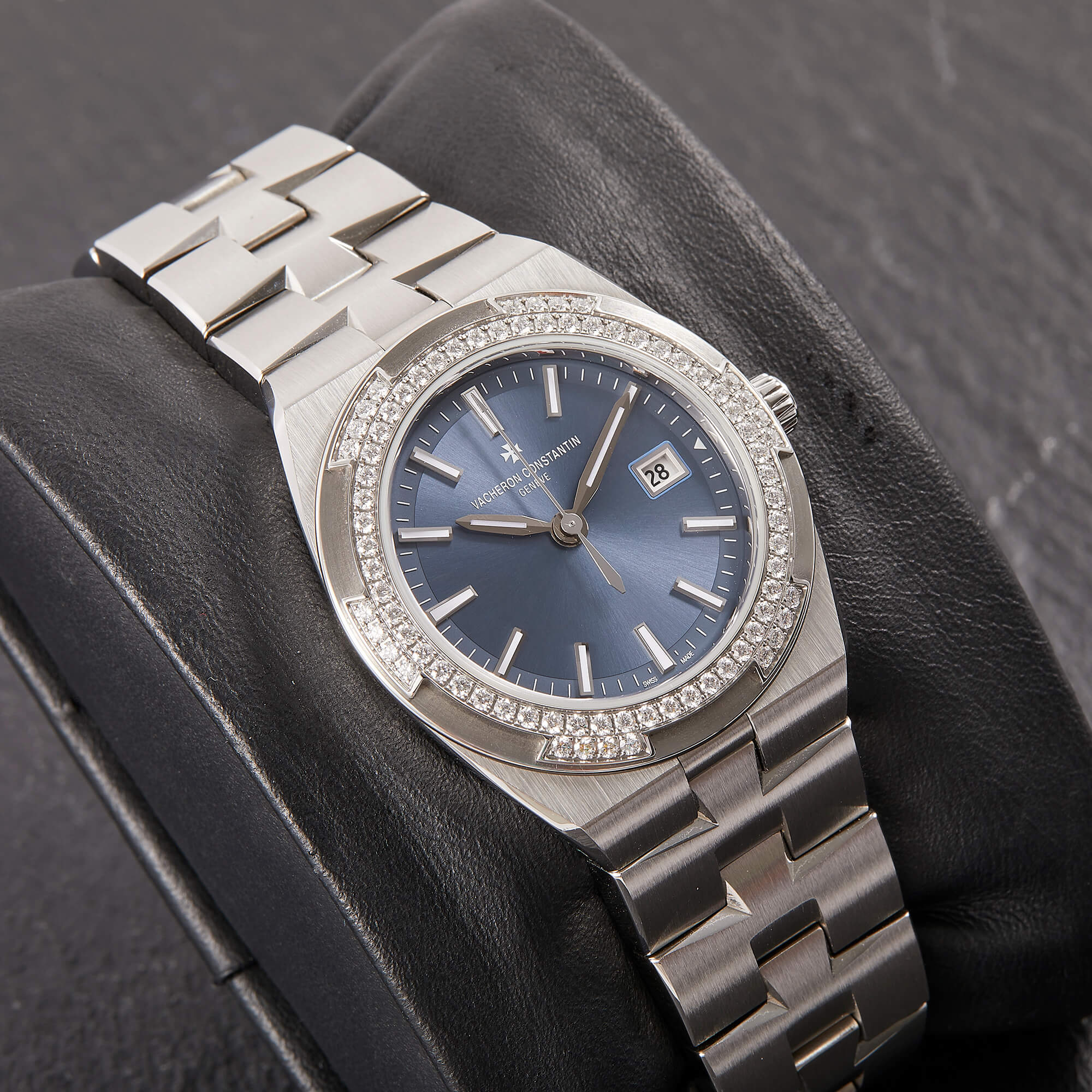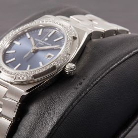 Die Vacheron Constantin Overseas Lady, Referenz 1225V-200A-B590, überzeugt mit ihrem eleganten blauen Zifferblatt und der funkelnden Diamantlünette. Die Uhr wird im Fullset geliefert und befindet sich in schönem Zustand. Sie vereint zeitlose Eleganz mit luxuriösem Design – perfekt für anspruchsvolle Damen.