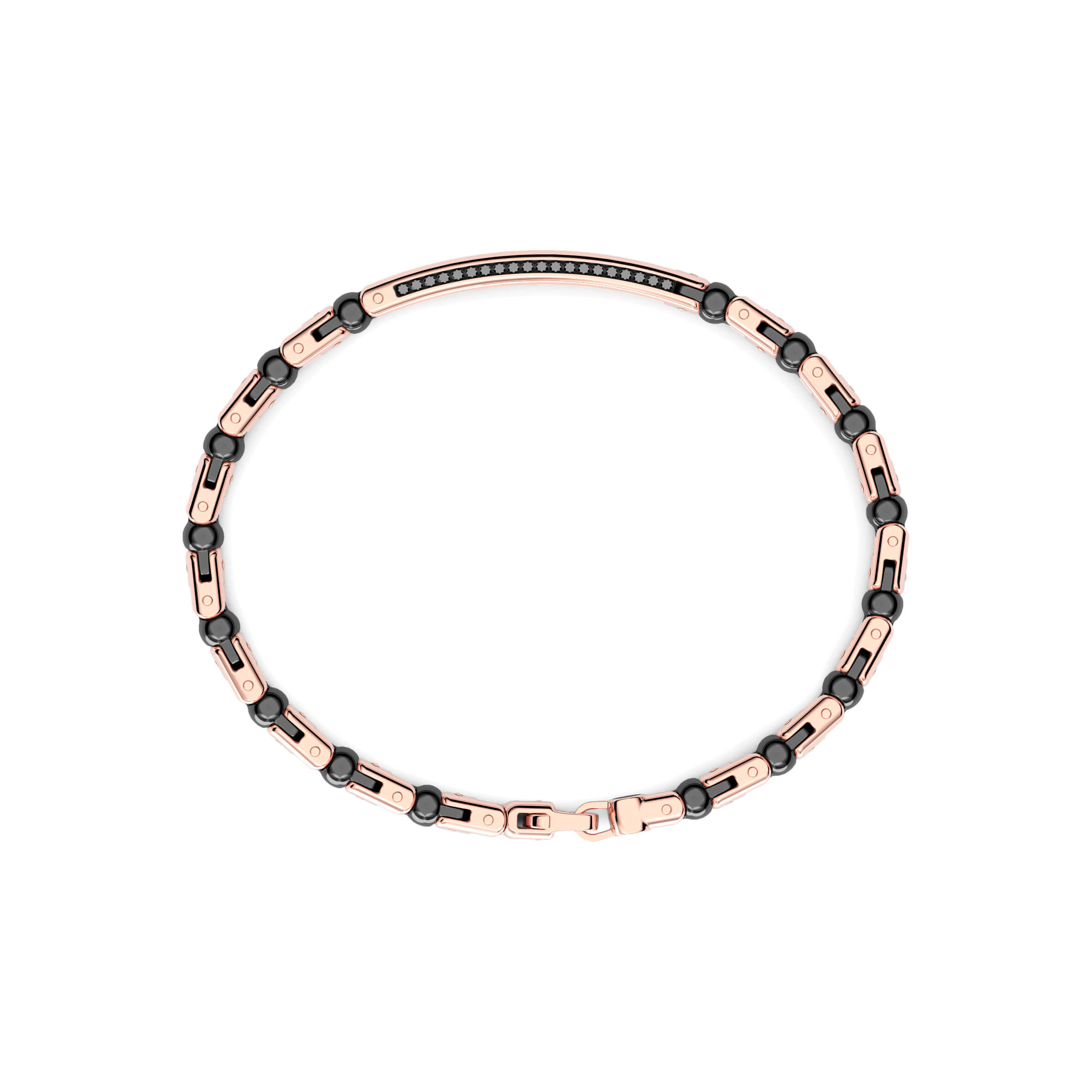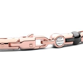Armband von Zancan aus 750/- Rotgold und schwarzer Keramik mit schwarzen Diamanten. Das Armband besteht aus geometrischen Gliedern, die durch funktionale Schrauben verbunden sind, die dem Schmuck ein geometrisches und mechanisches Design verleihen. Der Kontrast zwischen Rotgold und glänzender schwarzer Keramik verleiht diesem Armband eine starke visuelle Wirkung. Ein Juwel von großer mechanischer Komplexität, das dieses Stück des höchsten Schmuckstücks voll zur Geltung bringt. Das Armband ist Teil der Kollektion Ceramikgold, der Kollektion, die 18-karätiges Gold und Keramik durch komplexe Verarbeitungstechniken kombiniert. Es wird komplett in Italien handgefertigt.Produktspezifikationen