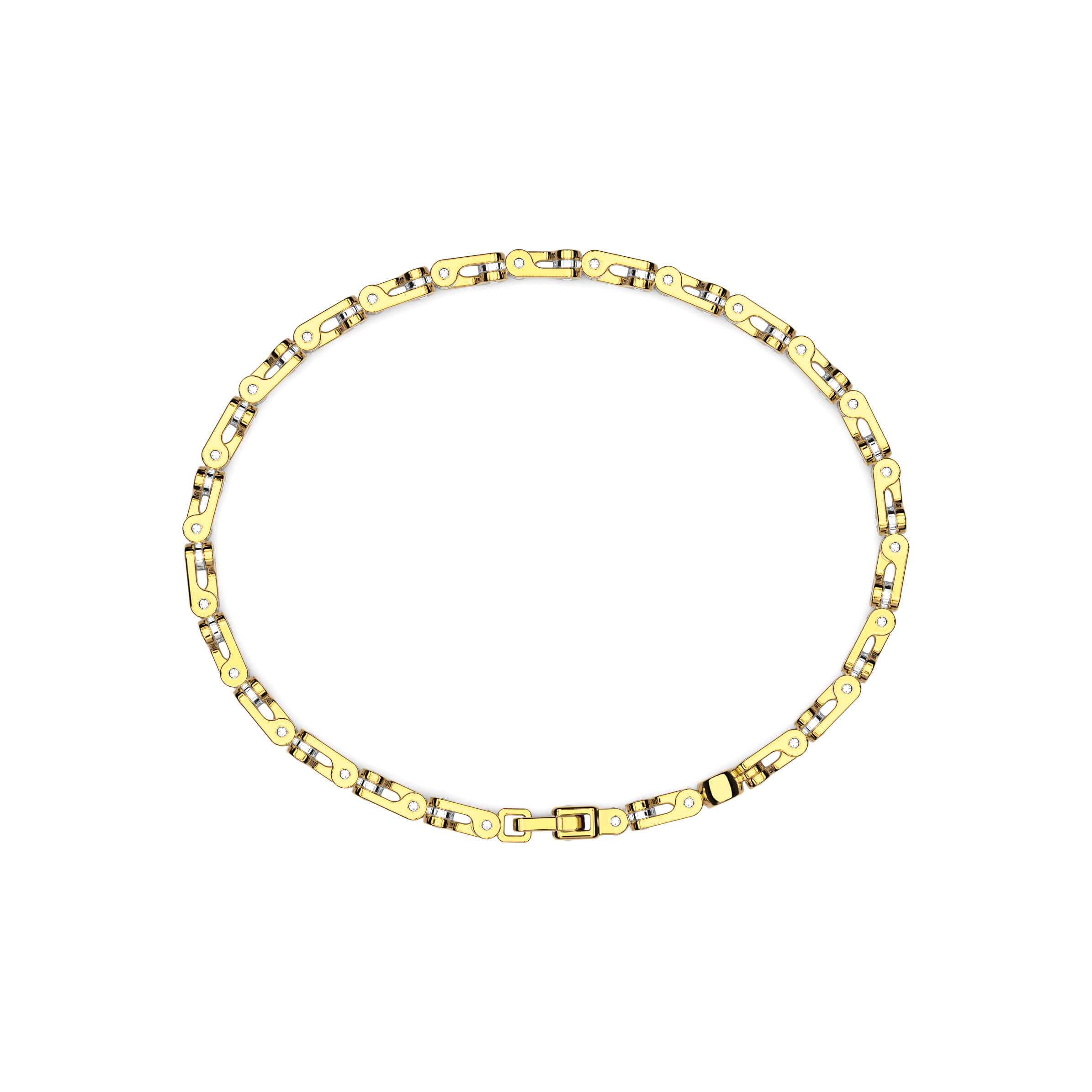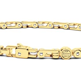 Armband von Zancan aus 750/- Gelb- und Weißgold. Das Armband besteht aus Weiß- und Gelbgoldgliedern, die mechanisch und technisch zusammengefügt werden. Der Kontrast zwischen Gelb- und Weißgold verleiht diesem Armband eine starke visuelle Wirkung. Es ist ein Juwel von großer mechanischer Komplexität.Produktspezifikationen