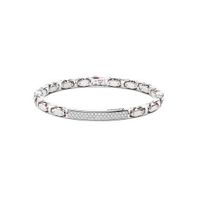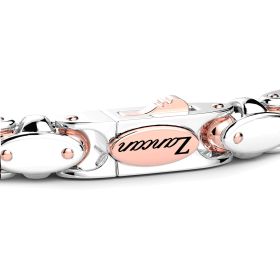 Armband von Zancan aus 750/- Weiß- und Rotgold mit weißen Diamanten. Das Armband besteht aus Weiß- und Rotgoldgliedern, die mechanisch und technisch zusammengefügt werden. Der Kontrast zwischen Rosé- und Weißgold verleiht diesem Armband eine starke visuelle Wirkung. Es ist ein Juwel von großer mechanischer Komplexität.Produktspezifikationen