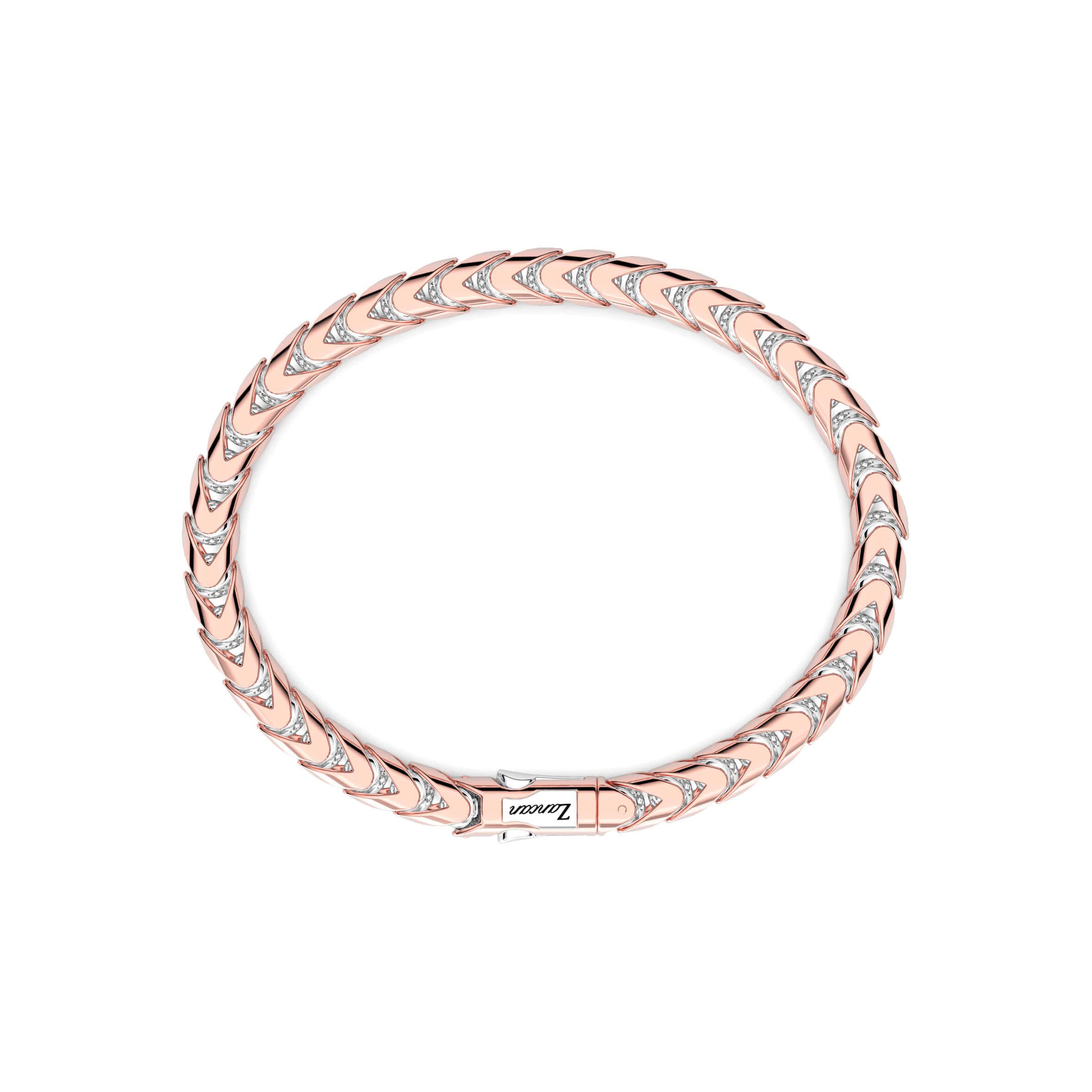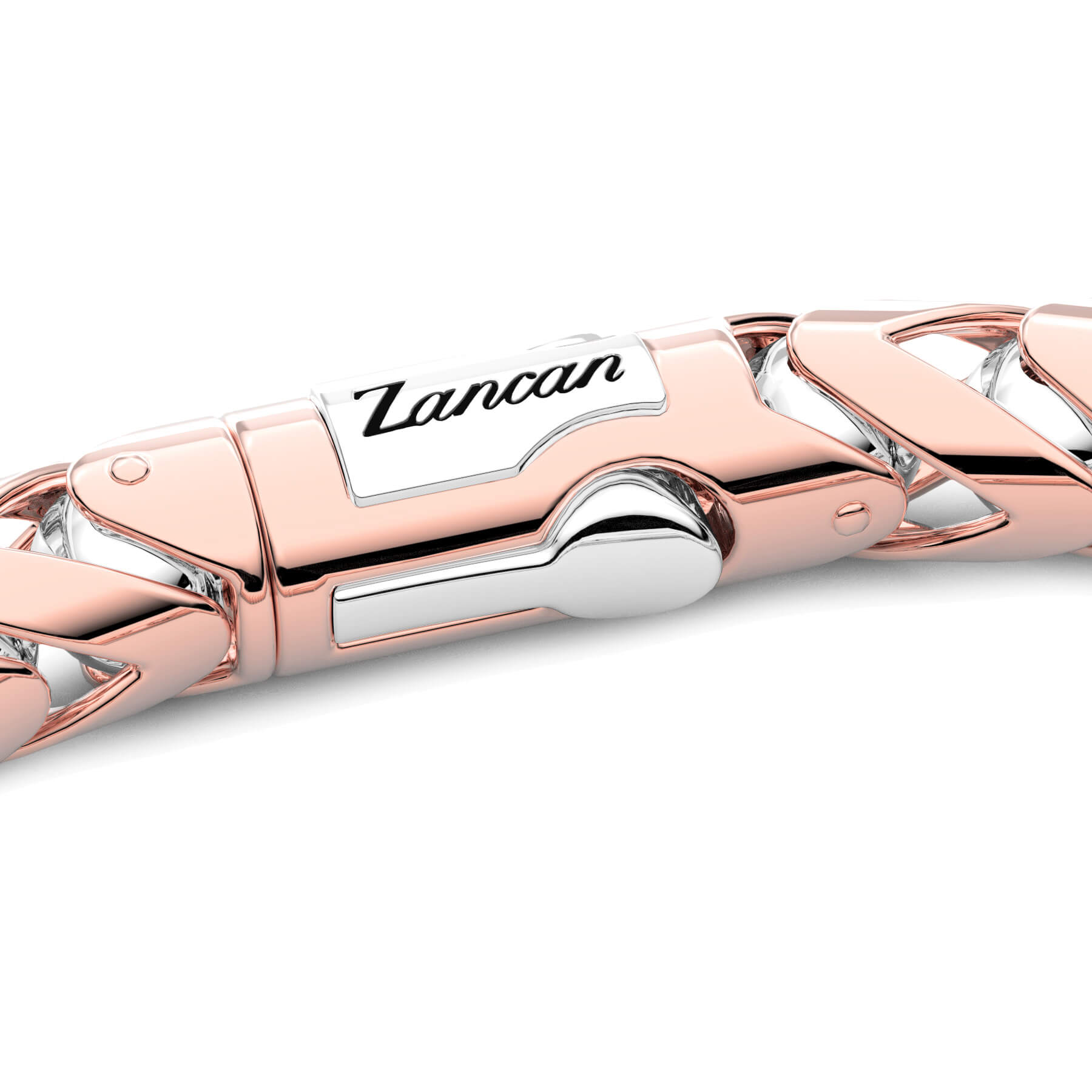 Armband von Zancan aus 750/- Weiß- und Rotgold. Das Armband besteht aus Rosé- und Weißgoldgliedern, die mechanisch und technisch zusammengefügt werden. Der Kontrast zwischen Rosé- und Weißgold verleiht diesem Armband eine starke visuelle Wirkung. Es ist ein Juwel von großer mechanischer Komplexität.Produktspezifikationen