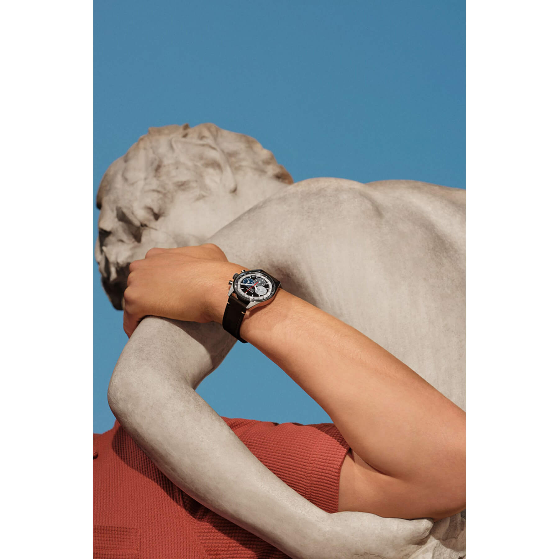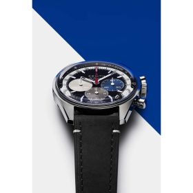 Die Chronomaster Original beeindruckt mit einem 38 mm großen Edelstahlgehäuse, das die gleichen Proportionen wie die A386 aufweist. Es ist harmonisch kombiniert mit einem neuinterpretierten dreifarbigen Zifferblatt in Schwarz und einem schwarzen Kalbslederarmband. Diese Uhr wird angetrieben von dem automatischen Hochfrequenzchronographenwerk El Primero 3600, das eine 1/10-Sekunden-Chronographenfunktion bietet und über eine beeindruckende Gangreserve von 60 Stunden verfügt.Produktspezifikationen