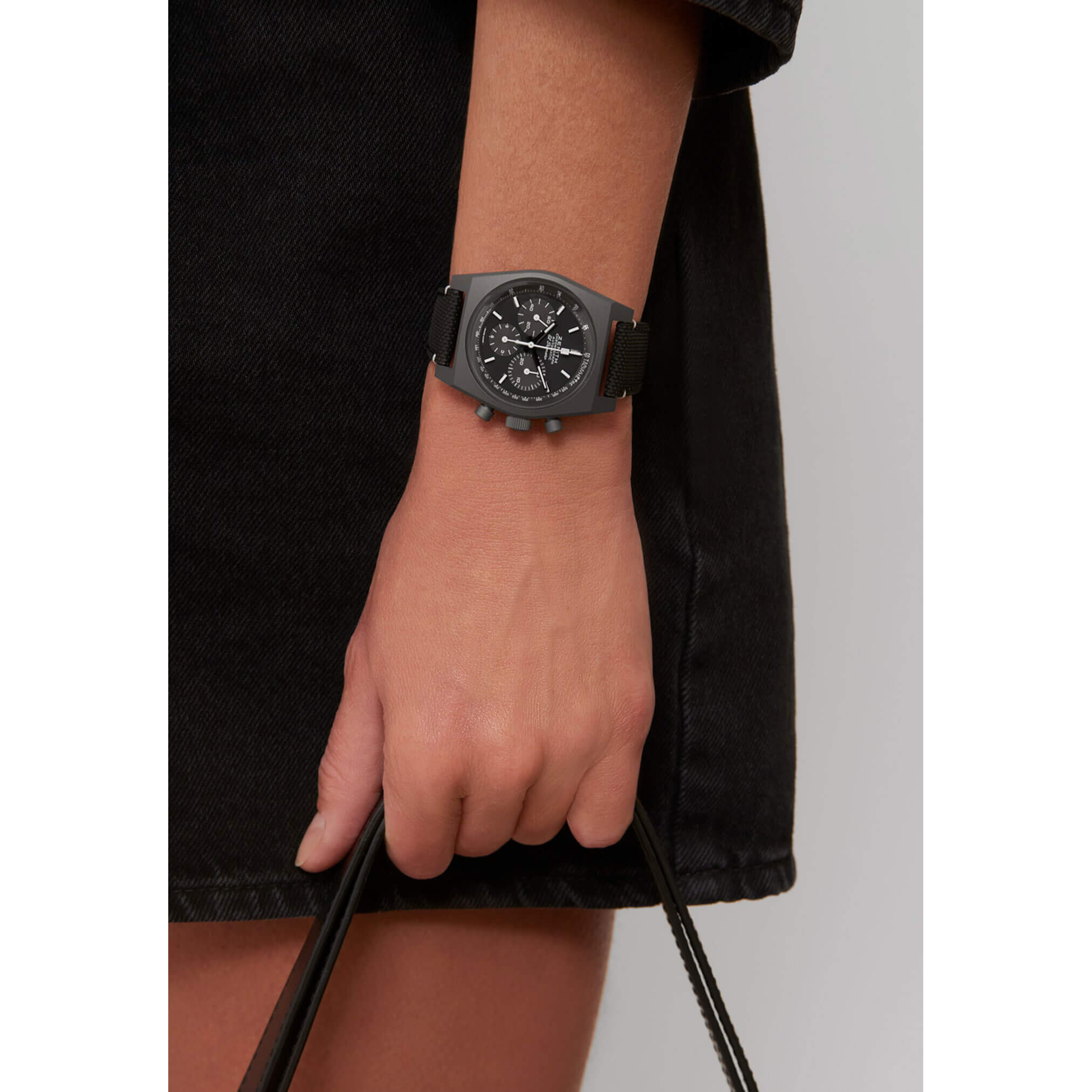 Die CHRONOMASTER Revival Shadow orientiert sich an der Ästhetik eines obskuren Chronographenprototyps von ZENITH aus den 1970ern, der ein geschwärztes Gehäuse aufwies. Das geheimnisvolle Erscheinungsbild wird mit einem vollständig mattierten Titangehäuse reproduziert. Das schwarze Zifferblatt verzichtet auf die Sekundenanzeige und das Datumsfenster. Gepaart mit einem schwarzen Kautschukarmband mit „Cordura“-Effekt.Produktspezifikationen