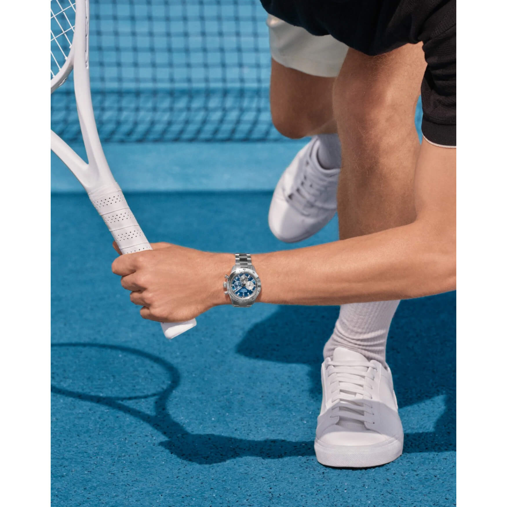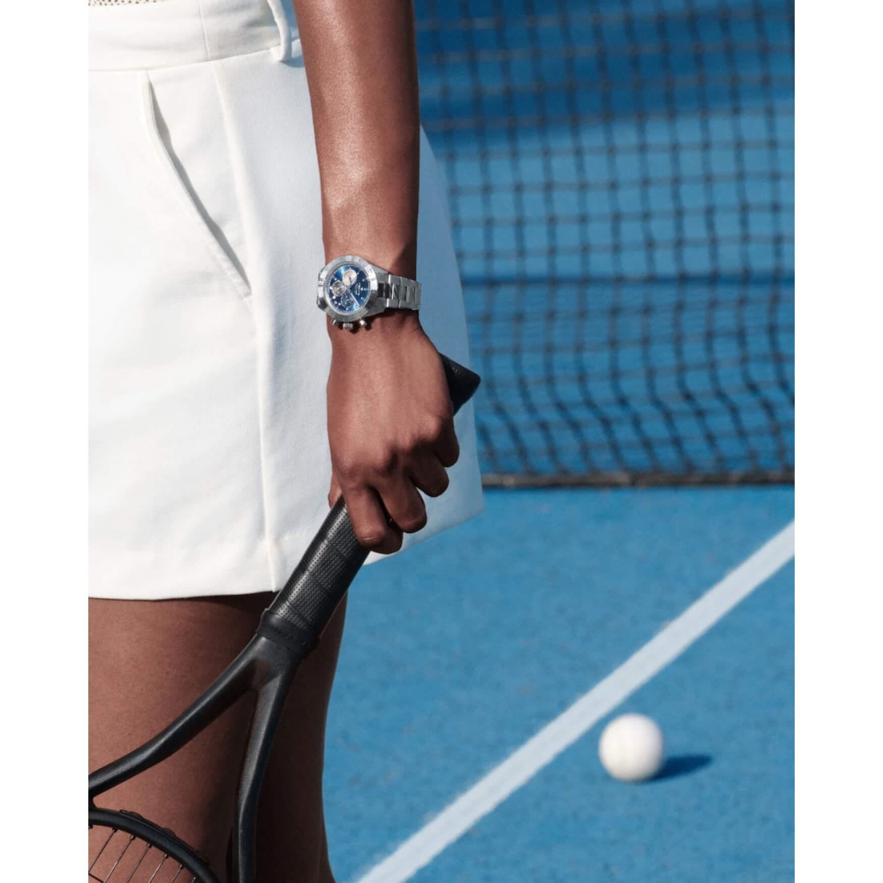 Die Chronomaster Sport zeichnet sich durch ihr 41 mm großes Edelstahlgehäuse und eine polierte Edelstahllünette aus. Das Ganze wird ergänzt durch ein dreifarbiges Zifferblatt in Metallicblau sowie ein passendes Edelstahlarmband. Ihr Herzstück ist das automatische Hochfrequenzchronographenwerk El Primero 3600, das mit einer 1/10-Sekunden-Chronographenfunktion ausgestattet ist und eine beeindruckende Gangreserve von 60 Stunden bietet.Produktspezifikationen
