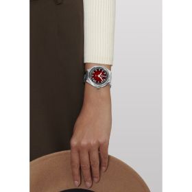 Eine originalgetreue Reproduktion einer der ersten DEFY Armbanduhren mit farbigem Zifferblatt. Sie besteht aus einem robusten achteckigen Edelstahlgehäuse mit vierzehnseitiger Lünette, einem tiefroten Zifferblatt mit Farbverlauf und einem „Leiter“-Armband aus Stahl. Angetrieben von dem automatischen Manufakturwerk ELITE 670.Produktspezifikationen
