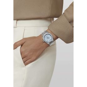 Die DEFY Skyline Boutique Edition im achteckigen 36-mm-Edelstahlgehäuse mit diamantbesetzter facettierter Lünette. Ihr Zifferblatt mit Sonnenschliff erstrahlt in einem bezaubernden Metallic-Eisblau und interpretiert dabei den symbolträchtigen vierzackigen ZENITH Stern auf eine neue Art und Weise. Angetrieben von dem automatischen Manufakturwerk Elite 670. Zusätzlich wird ein eisblaues, gemustertes Kautschukarmband angeboten. Beide Armbänder können problemlos ausgetauscht werden, da die Uhr über ein ausgereiftes Auswechselsystem verfügt.