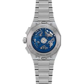 Die DEFY Skyline Chronograph Skeleton präsentiert sich in einem markanten, achteckigen 42-mm-Gehäuse aus Edelstahl mit facettierter Lünette und einem skelettierten Zifferblatt in tiefem Blau, das von silberfarbenen Zählern kontrastreich akzentuiert wird. Im Inneren arbeitet das hochpräzise Manufakturkaliber El Primero 3600SK – ein automatischer Hochfrequenzchronograph, der eine Messgenauigkeit bis auf die Zehntelsekunde ermöglicht. Zur Uhr gehören ein Edelstahlarmband sowie ein zusätzliches Kautschukband mit blauem Muster, die sich dank des durchdachten Schnellwechselsystems mühelos austauschen lassen – für maximale Flexibilität und stilvolle Vielfalt am Handgelenk.Produktspezifikationen