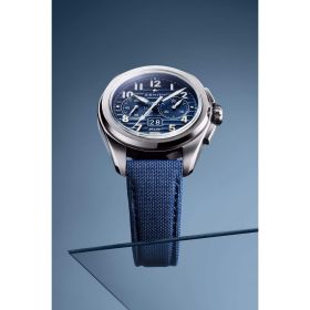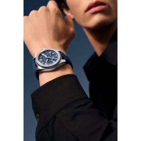 Die Boutique Edition der ZENITH PILOT Big Date Flyback ist mit einem 42,5-mm-Gehäuse aus Edelstahl und einer übergroßen Krone ausgestattet. Das Zifferblatt ist blau und gewellt, mit großen arabischen Leuchtziffern. Im Lieferumfang enthalten sind austauschbare Armbänder aus blauem Kautschuk mit Cordura-Effekt und braunem Kalbsleder. Die Uhr wird vom automatischen Hochfrequenzchronographenkaliber El Primero 3652 mit Großdatum und Flyback-Funktion angetrieben.Produktspezifikationen
