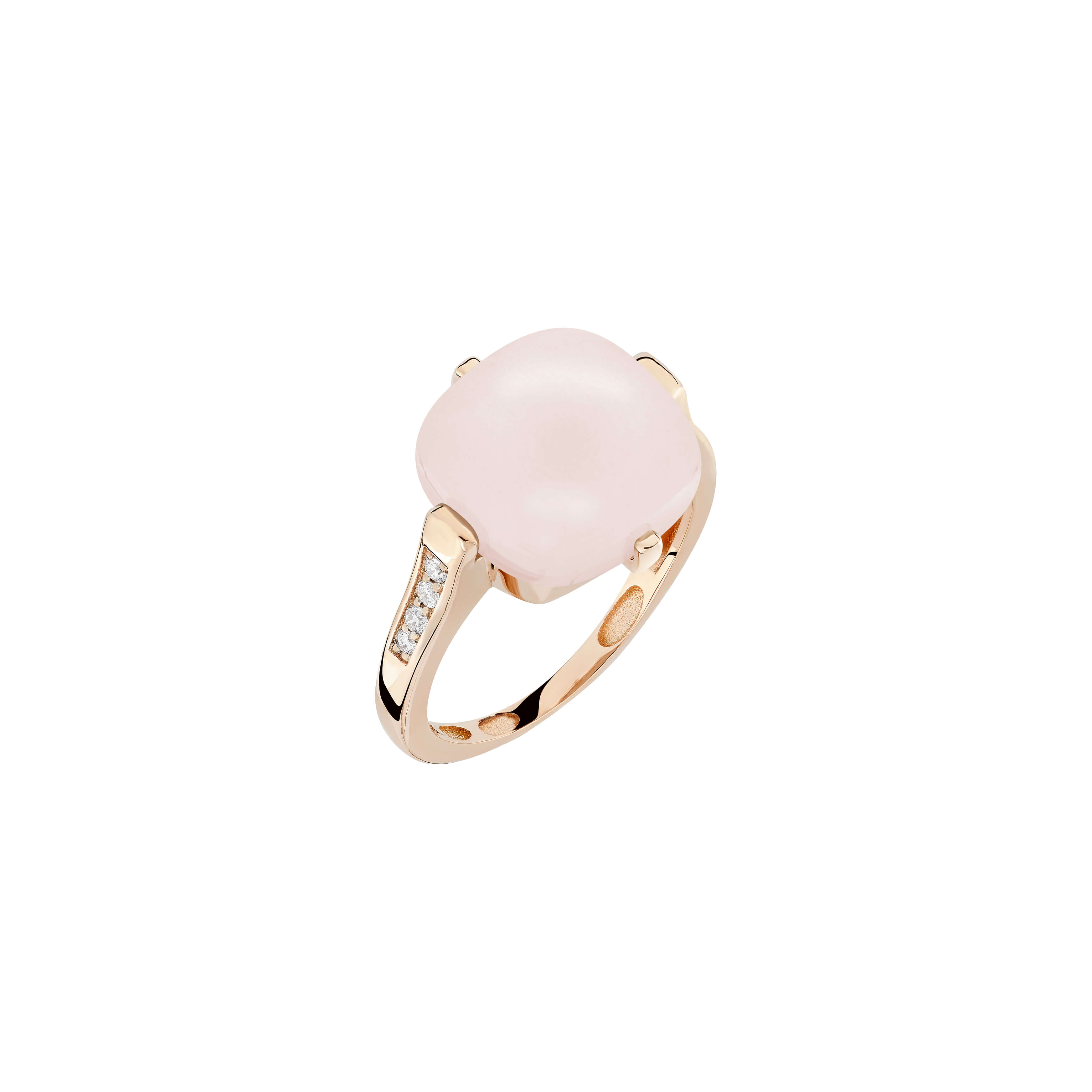 Ring aus 750/- Rotgold mit einem Guava Quarz im Cabochon-Schliff und Brillanten (0,06 ct.)Produktspezifikationen