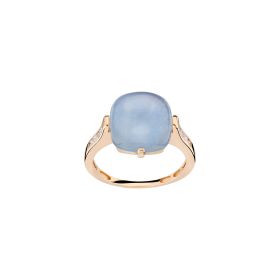 Ring aus 750/- Rotgold mit einem blauen Saphir im Cabochon-Schliff und Brillanten (0,06 ct.)Produktspezifikationen
