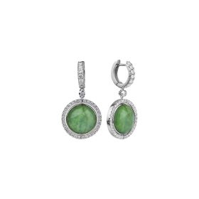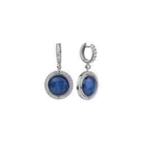 Ohrringe aus 750/- Weißgold mit facettierten blauen Saphir- und Smaragd-Doubletten und Brillanten (0,98 ct.). Der unsichtbare Drehmechanismus ermöglicht das Tragen zweier unterschiedlicher Schmuckstücke in einem einzigen Schmuckstück.Länge 3,5 cm