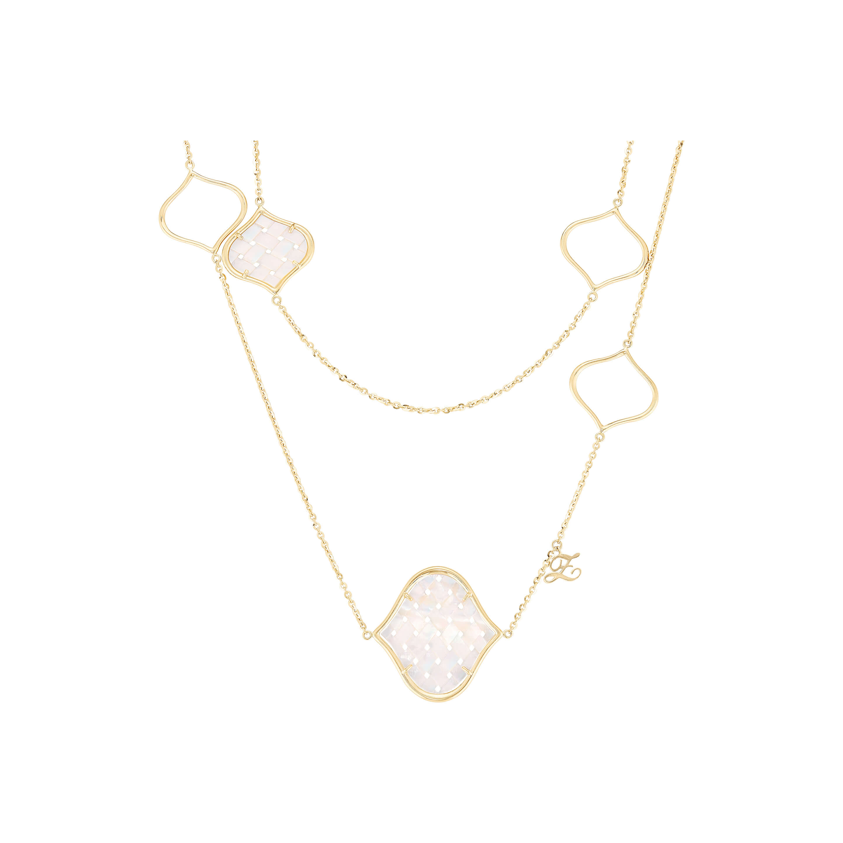 Collier aus 750/- Gelbgold mit weißem PerlmuttLänge 90 cm